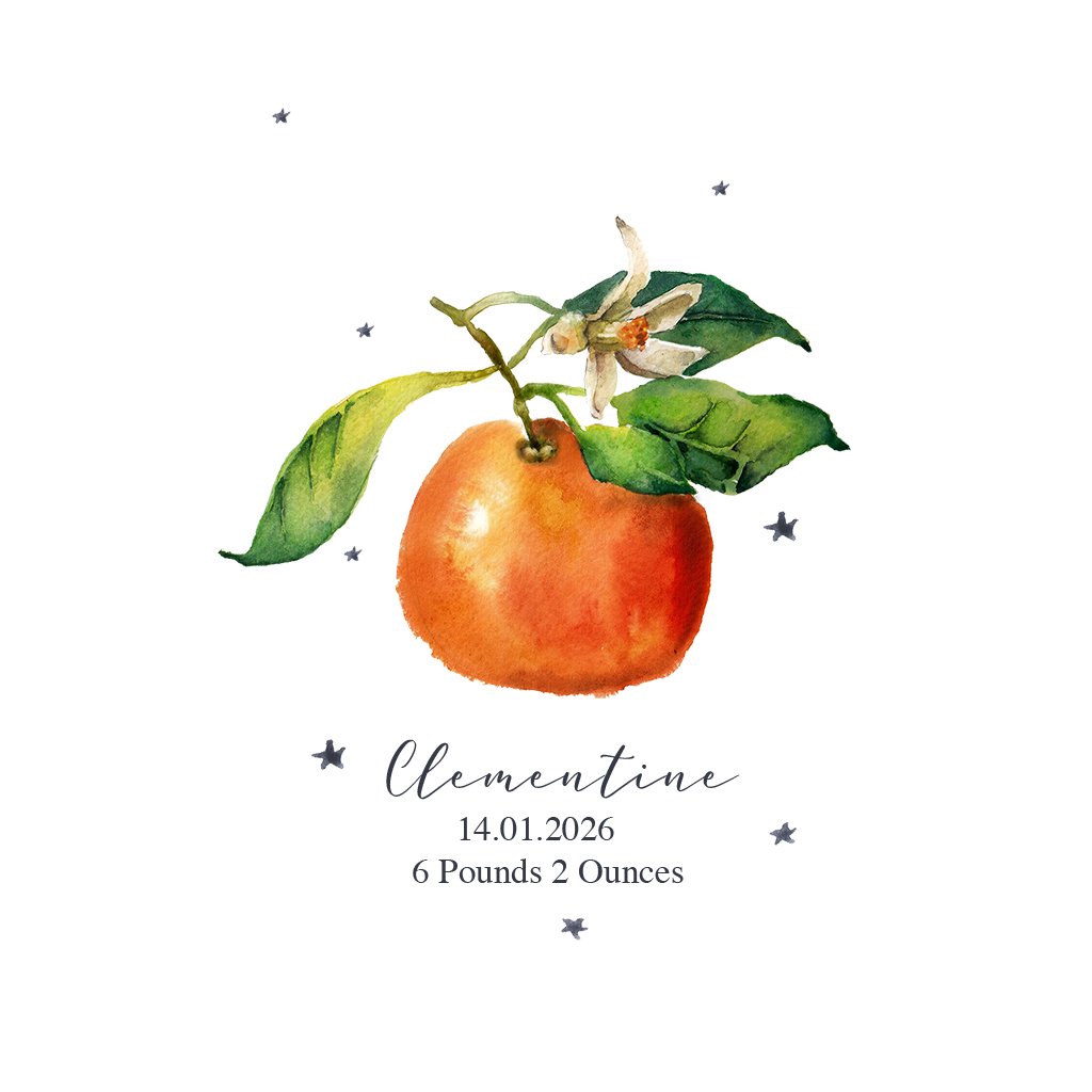 The fresh delicate clementine illustration adds a soft natural touch to any nursery or child’s bedroom. Whether chosen for a baby named Clementine or simply loved for it’s gentle timeless design. This print makes a thoughtful and unique gift.