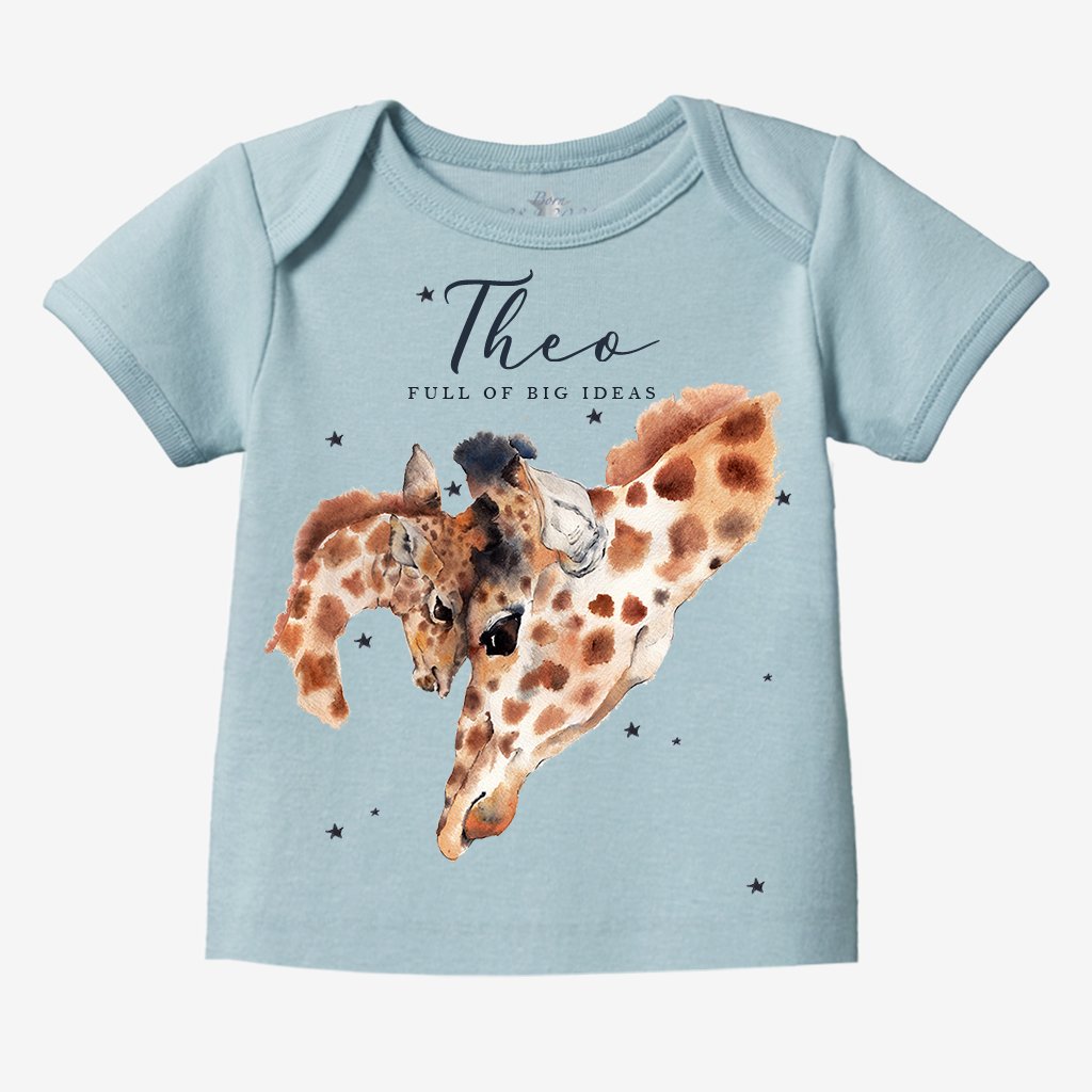 Personalised Giraffe Baby T-Shirt Organic cotton Gift.