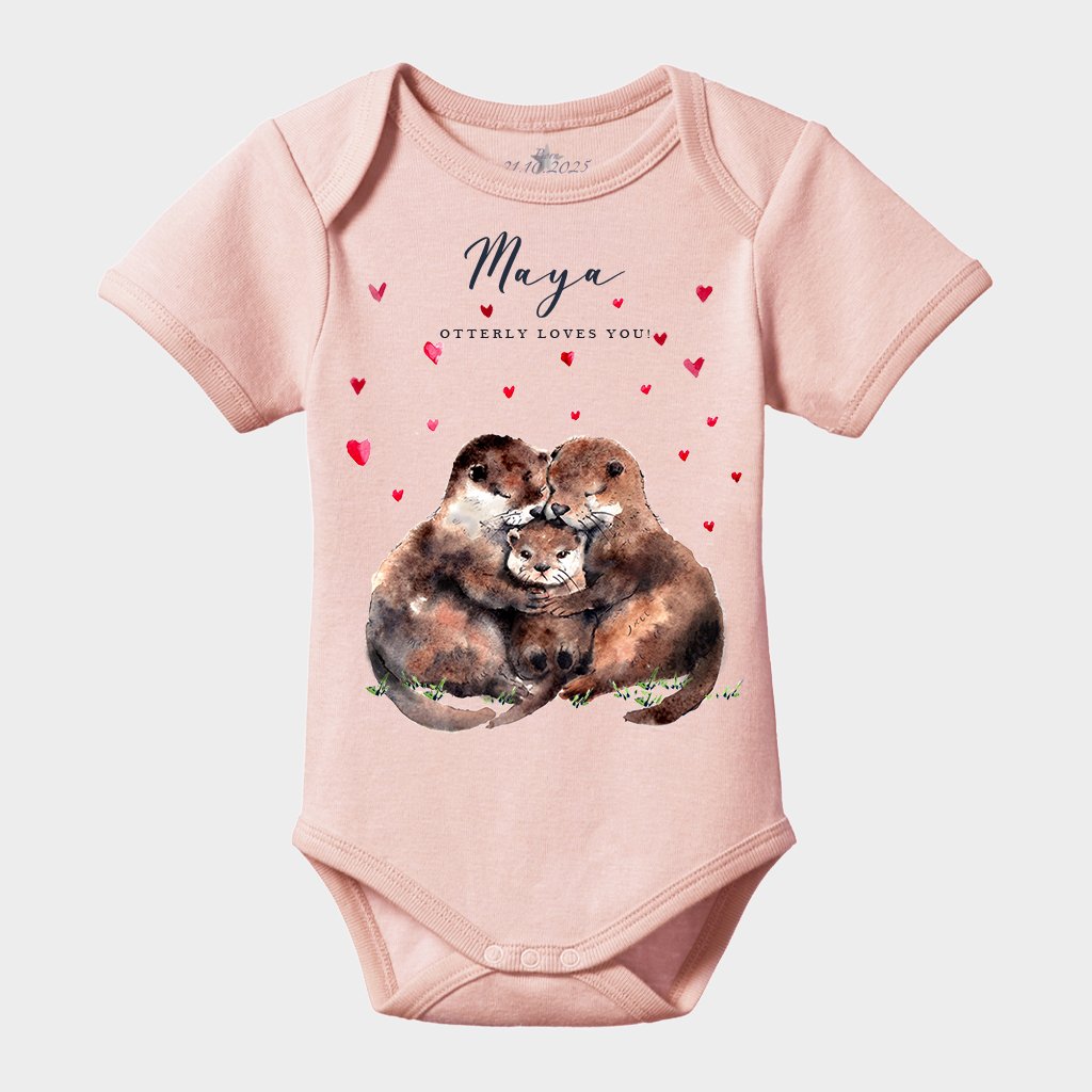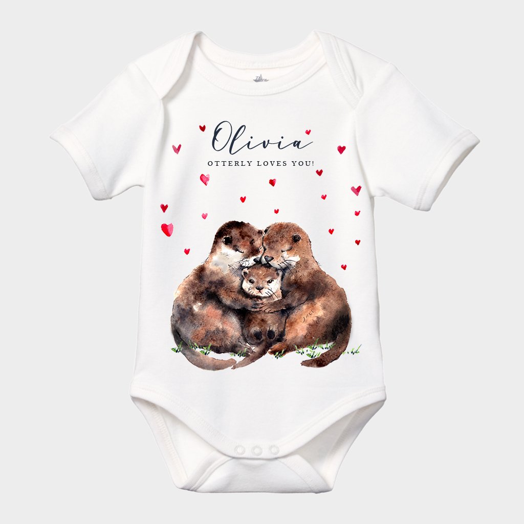 This bodysuit is personalised with your baby’s name above the cute wording “otterly loves you!” – creating a sweet keepsake that’s perfect for celebrating family love, whether it’s Valentine’s Day or fun family photos.