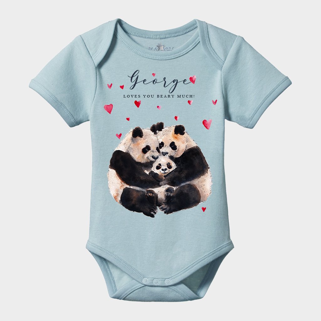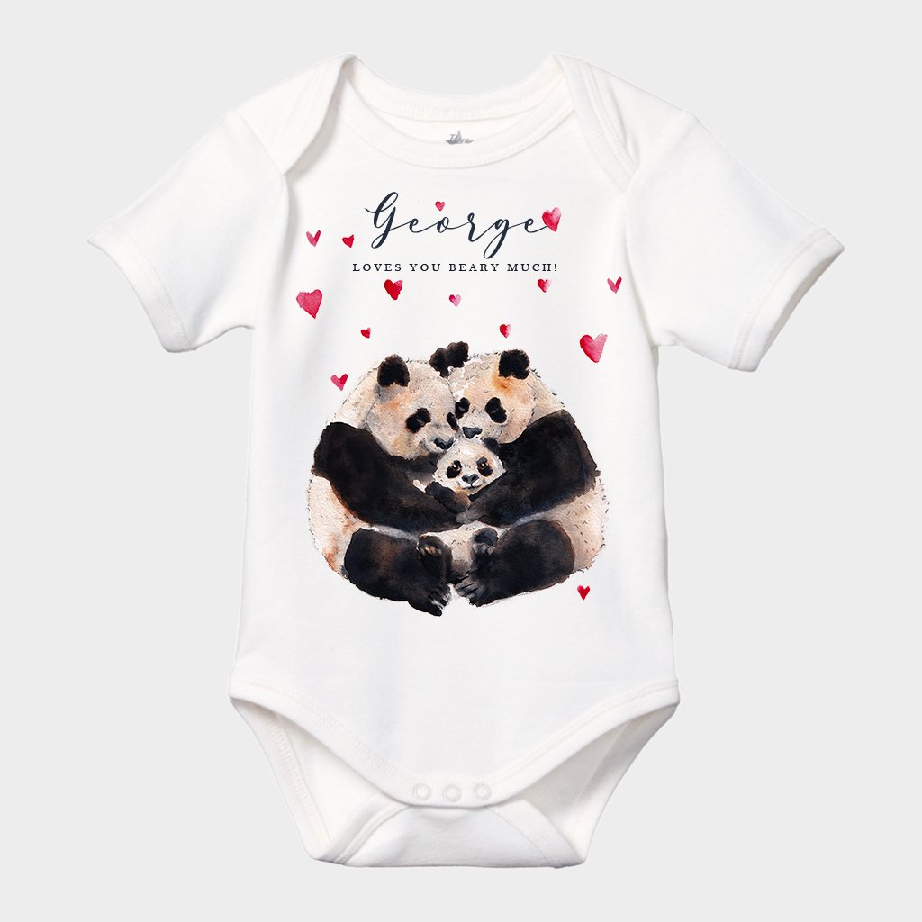 Make your little one’s Valentine’s Day extra special with this personalised cotton Valentine bodysuit, featuring a hand-painted family of snuggling pandas. Each design is lovingly created in watercolour and hand-printed onto the softest 100% organic cotton, making it eco-friendly, gentle on your baby’s delicate skin and sustainably made.